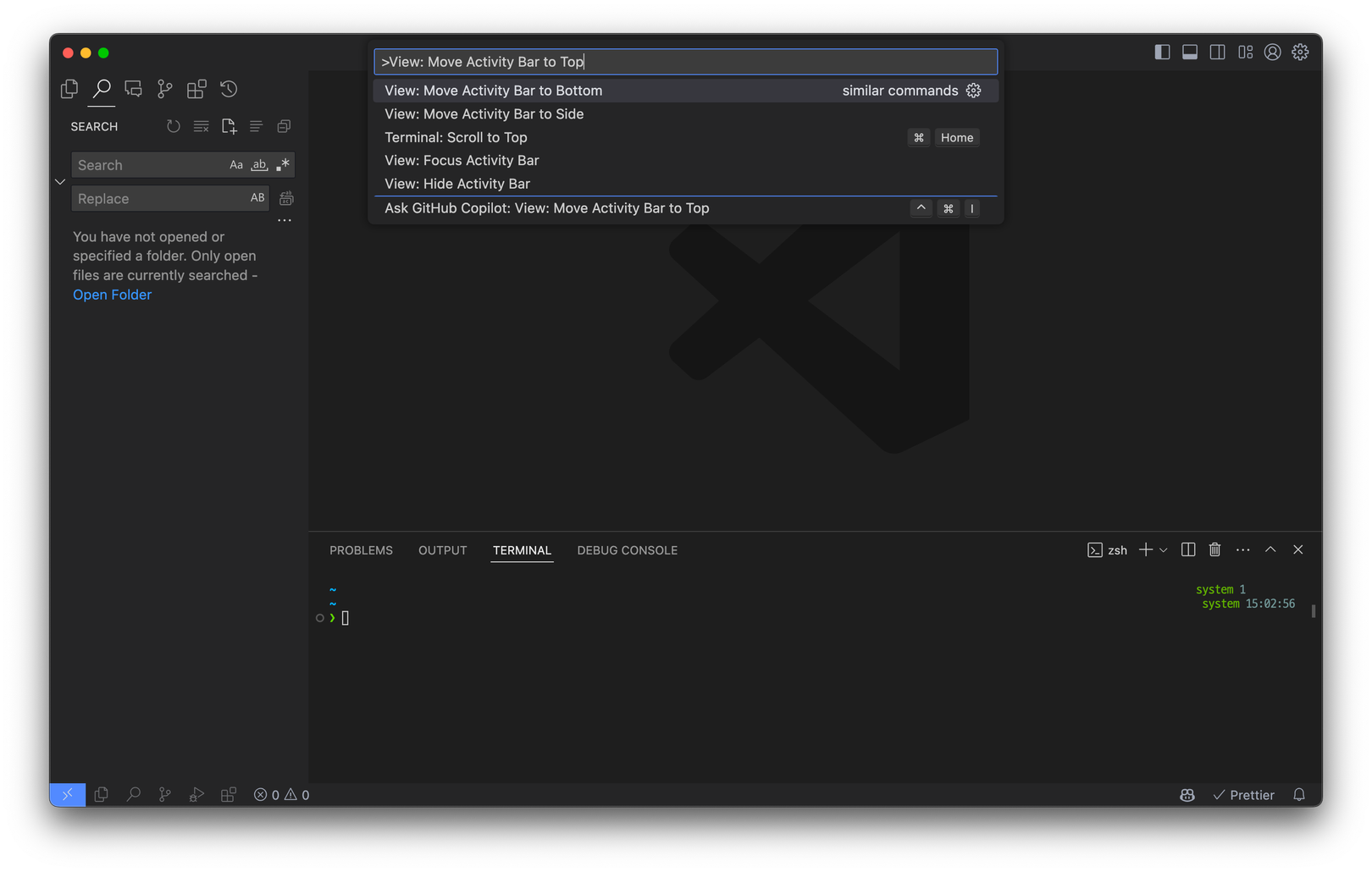 Cmd + Shift + PView: Move Activity Bar to Top- 되돌리고 싶다면