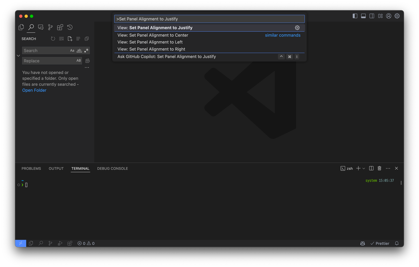 Cmd + Shift + PView: Set Panel Alignment to justify- 되돌리고 싶다면